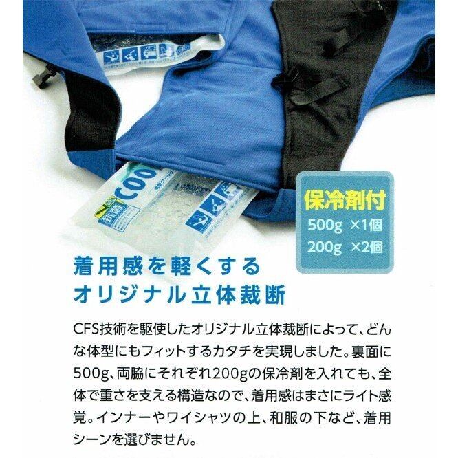 ●付属の保冷剤パックは高吸水性ポリマーを使用。交換用の保冷剤があれば、さらに長時間の作業も非常に快適になります。