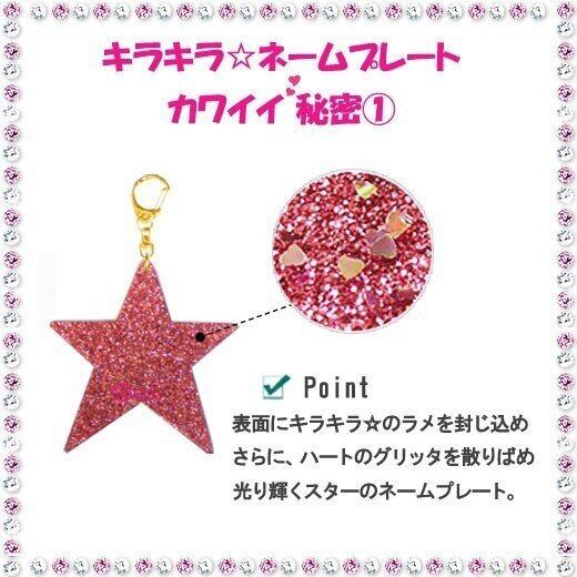 ●ネームプレートの表面には、きらきら光り輝くラメを一面に散りばめ、プレートの裏面には、星形のきらきら光り輝くグリッタを散りばめたネームプレート。