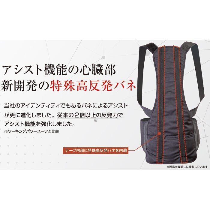 従来の2倍以上の反発力でアシスト力がアップしました。※ワーキングパワースーツと比較。